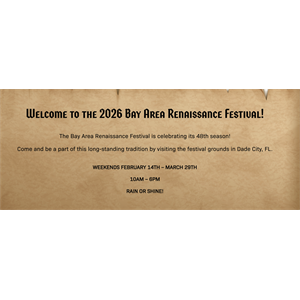 The Bay Area Renaissance Festival is Back for 7 Weeks! Weekends (Saturday & Sunday) from Feb 14th - March 29th 10am - 6pm Rain or Shine 12838 AUTON RD., DADE CITY, FL 33525 Tickets are avai read more...