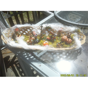HANDMADE FALL/HALLOWEEN CENTERPIECE DECORATION. NEW. 16 X 7 X 2"HALLOWEEN GARDEN IN A BASKET. SPOOKY.