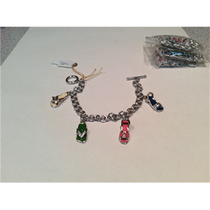 Ladies sterling silver charm bracelet 7 inches long with 7 charms. These enamel coated flip flop and sandal style charms. Spring sale price $99 each.