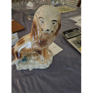 VINTAGE CERAMIC PORCELAIN STANDING LION FIGURINE, APPROXIMATELY 7" TALL AND 5-1/2" WIDE, SHINY CERAMIC, NO CHIPS, read more...