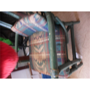 rattan accent chair. painted green with new upholstery. very good condition except some touch up needed on paint read more...