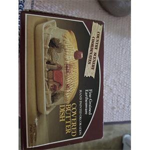 VTG MARKS & ROSENFELD COVERED BUTTER DISH COUNTRY FARM BARN SCENE THATCHED ROOF read more...